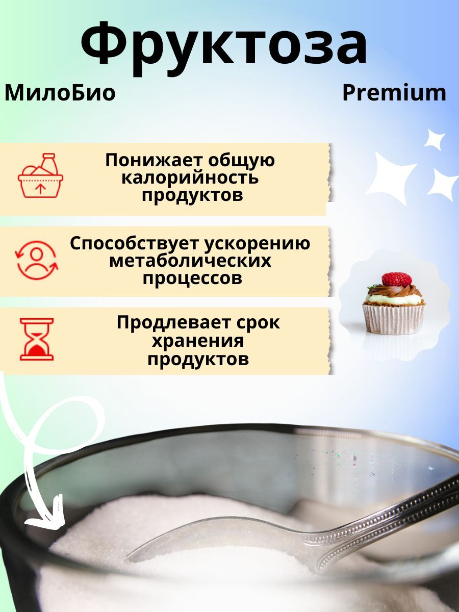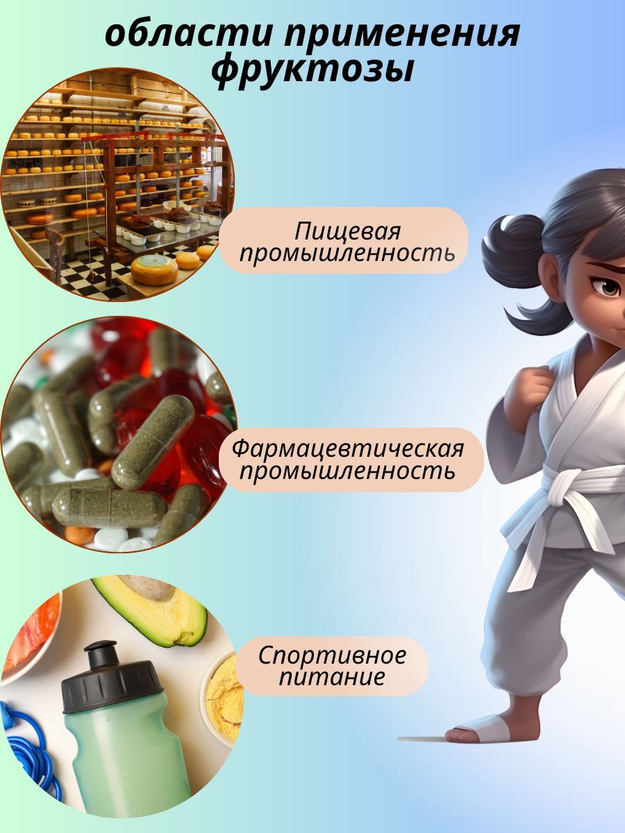 Фруктоза-природный сахарозаменитель. Фруктозу применяют как пищевую добавку и в качестве самостоятельного продукта. Фруктоза снижает калорийность блюд, при этом украшает их вкус сладостью и не искажает натуральные вкусы и ароматы. При выборе сахарозаменителя важным аргументом в пользу фруктозы является факт отсутствия побочных эффектов при ее употреблении. Фруктоза как добавка в пищу-полностью безопасна, в природе содержится в фруктах, различных плодах, арбузах, дынях, меде и др.