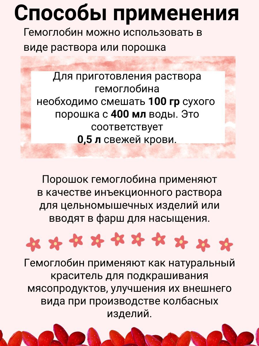 *Примечание: При покупке данного товара вы получите не только качественный гемоглобин, но и возможность расширить свой ассортимент мясных продуктов, сделав их более привлекательными для потребителей.*