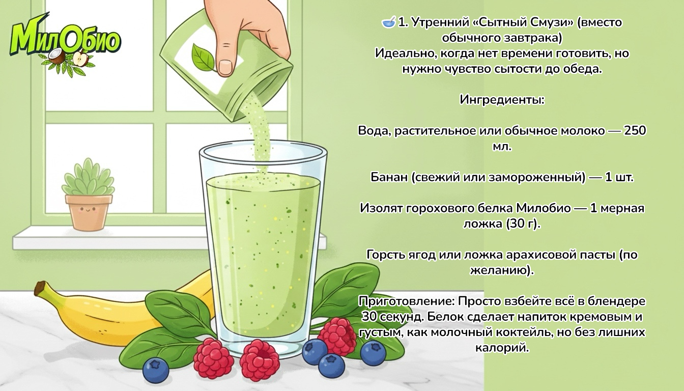 Контроль аппетита: Белок насыщает лучше и дольше, чем любая другая еда. Добавьте его в утреннюю кашу или смузи, и вы не захотите есть до самого обеда. Никаких перекусов печеньем!