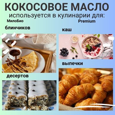 Кокосовое масло для жарки-просто незаменимо! при жарке не образуются не образуются канцерогены. Кокосовое масло можно добавлять в кофе, коктейли, фруктовые смузи. Кокосовое масло используют для увлажнения кожи рук тела и лица. Из кокосового масла делают кремы и лосьоны.
