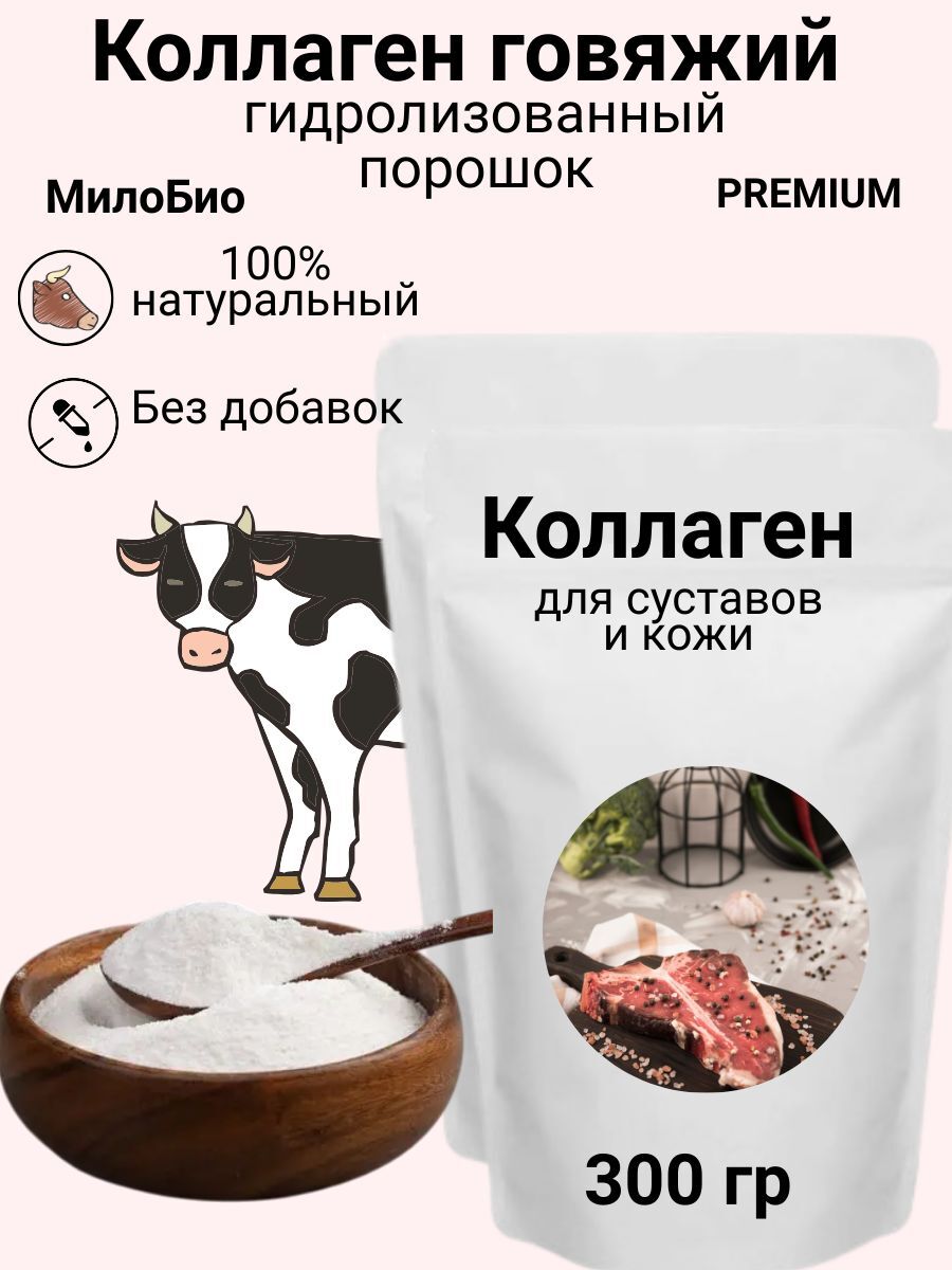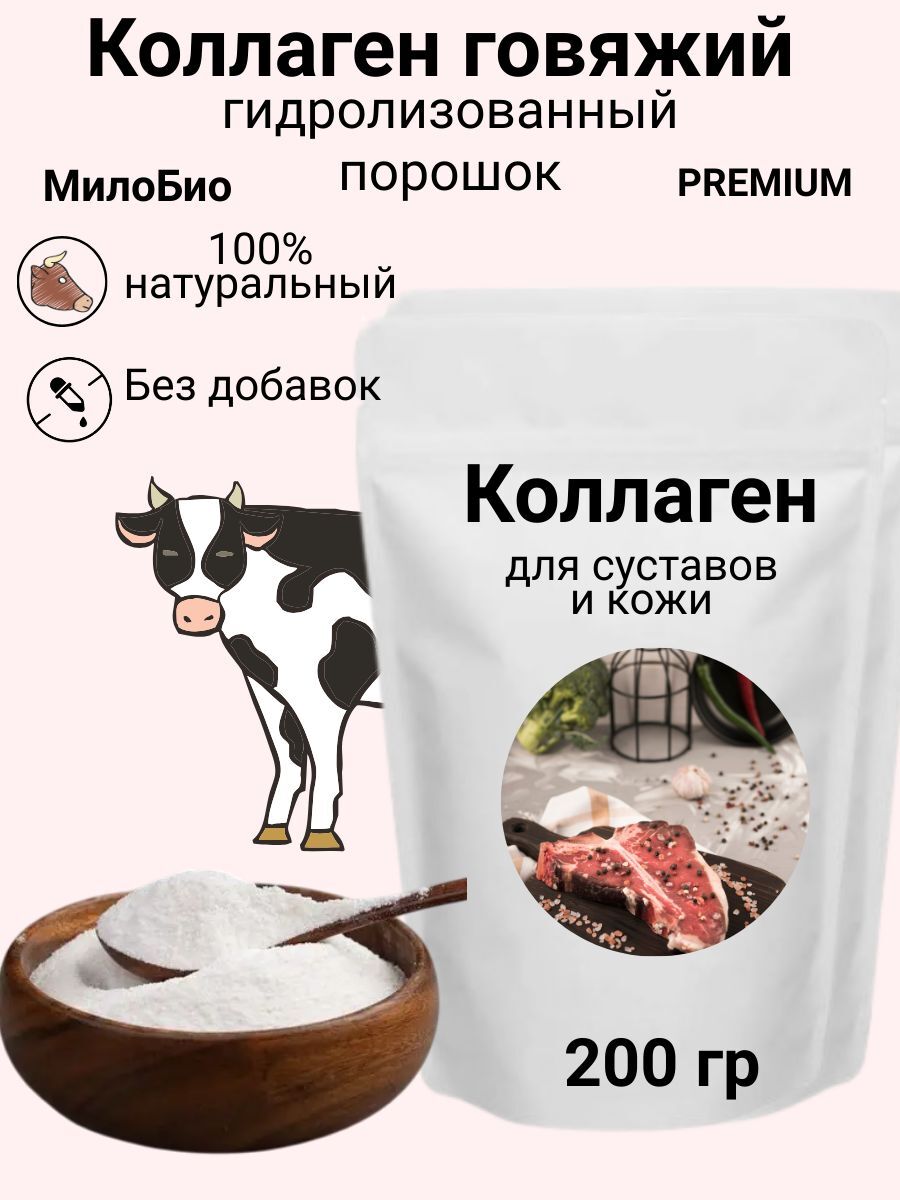 Коллаген говяжий гидролизованный МилоБио для суставов и кожи, 200 гр порошок