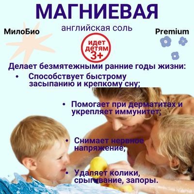 Соль не имеет запаха, полностью растворяется в воде, подходит для детей от 3 лет.
