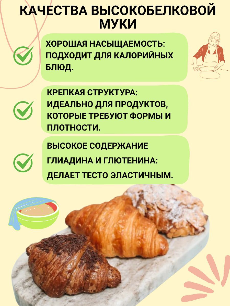 Мука высокобелковая пшеничная - это продукт, который поможет вам приготовить вкусные блюда из пшеничной муки. Она подходит для всех типов теста и может использоваться как основной ингредиент для многих рецептов.