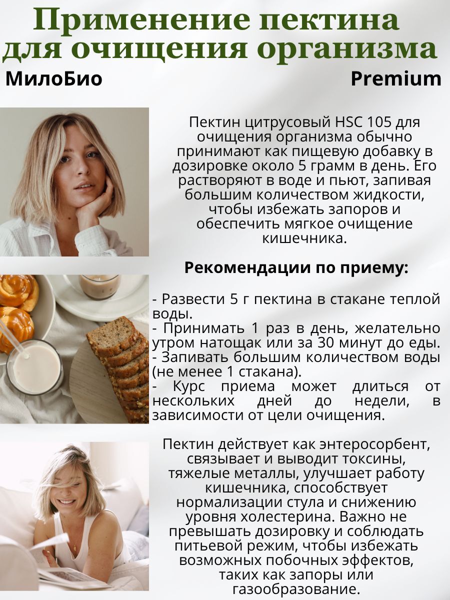 - Снижение уровня холестерина. Пищевые волокна пектина связывают жирные кислоты, помогая снизить уровень "плохого" холестерина в крови и защищая сосуды от атеросклероза. - Детоксикация организма. Пектин связывает тяжелые металлы, токсины и другие вредные вещества, выводя их из организма.